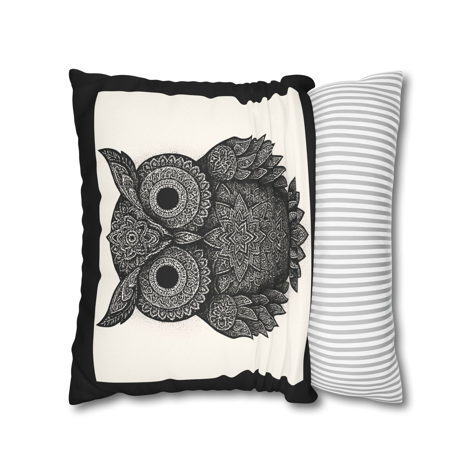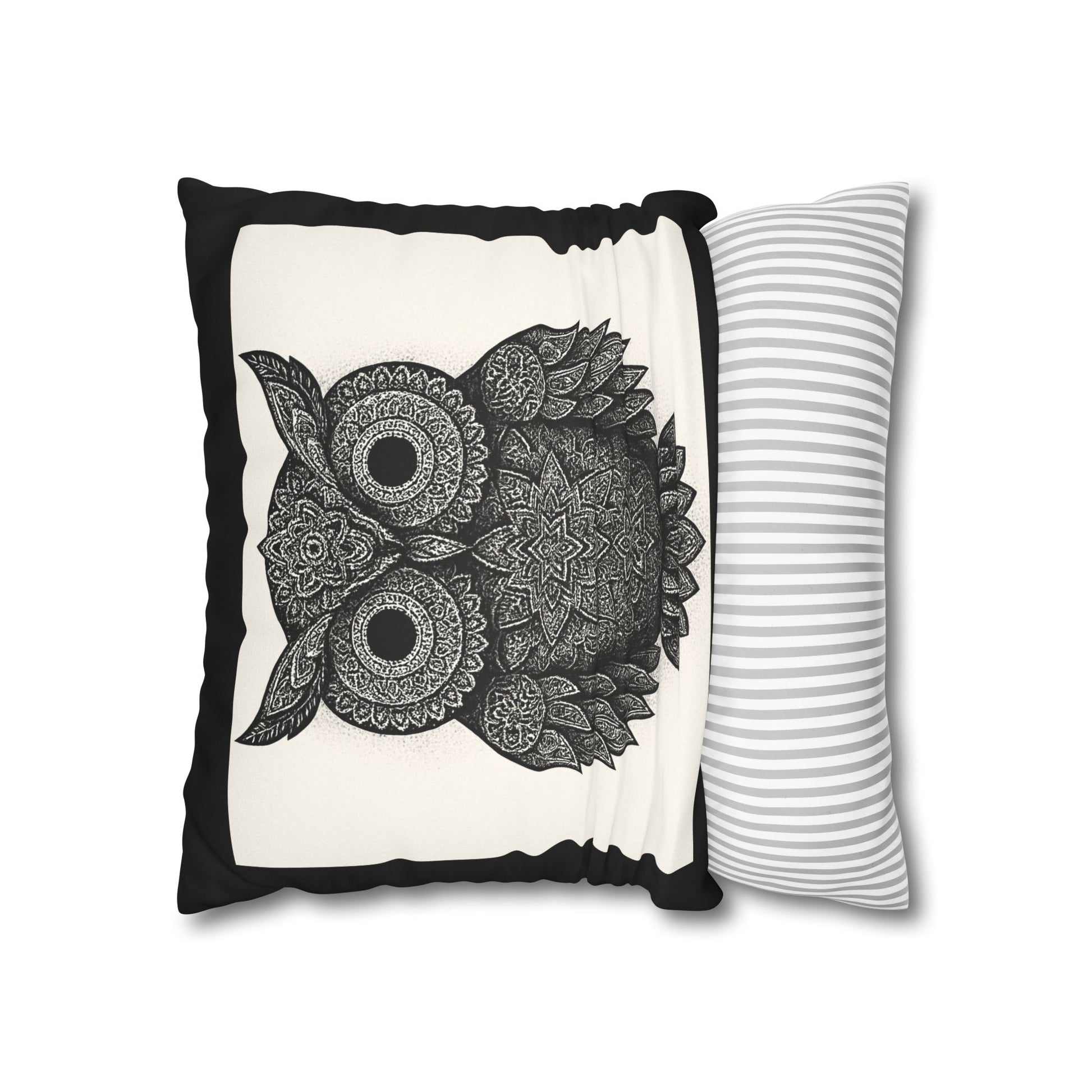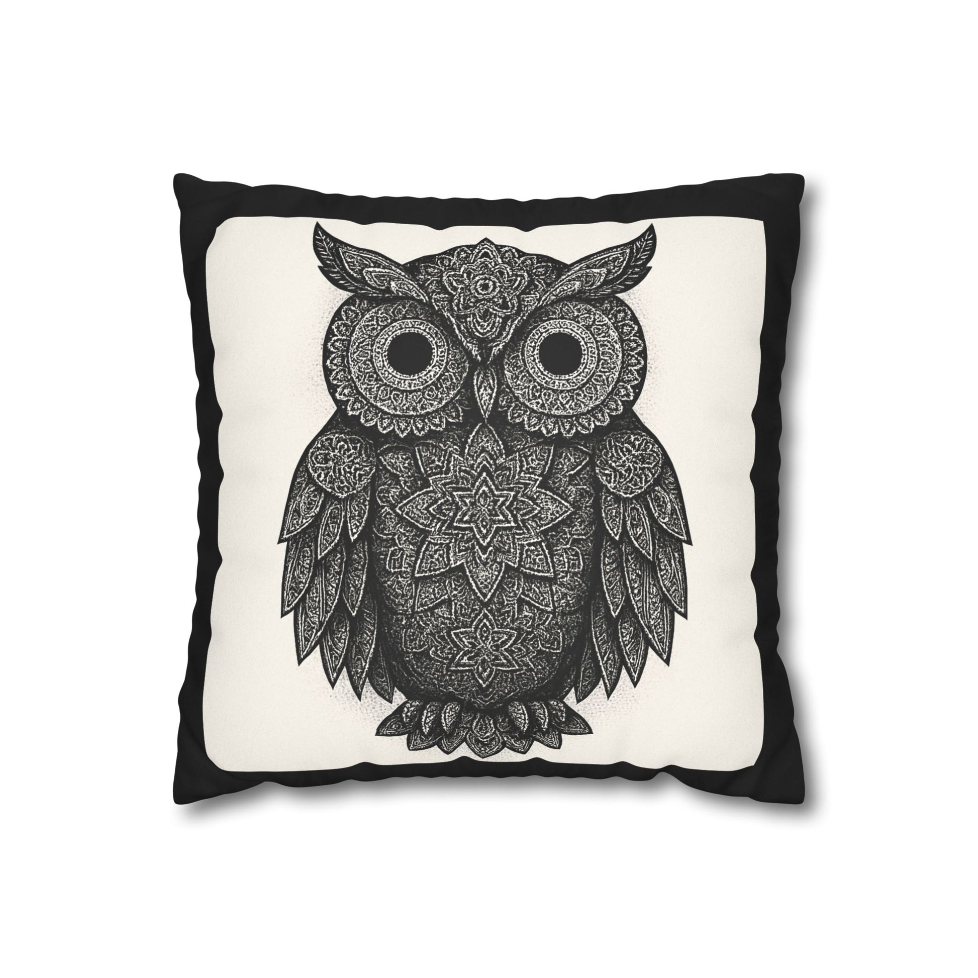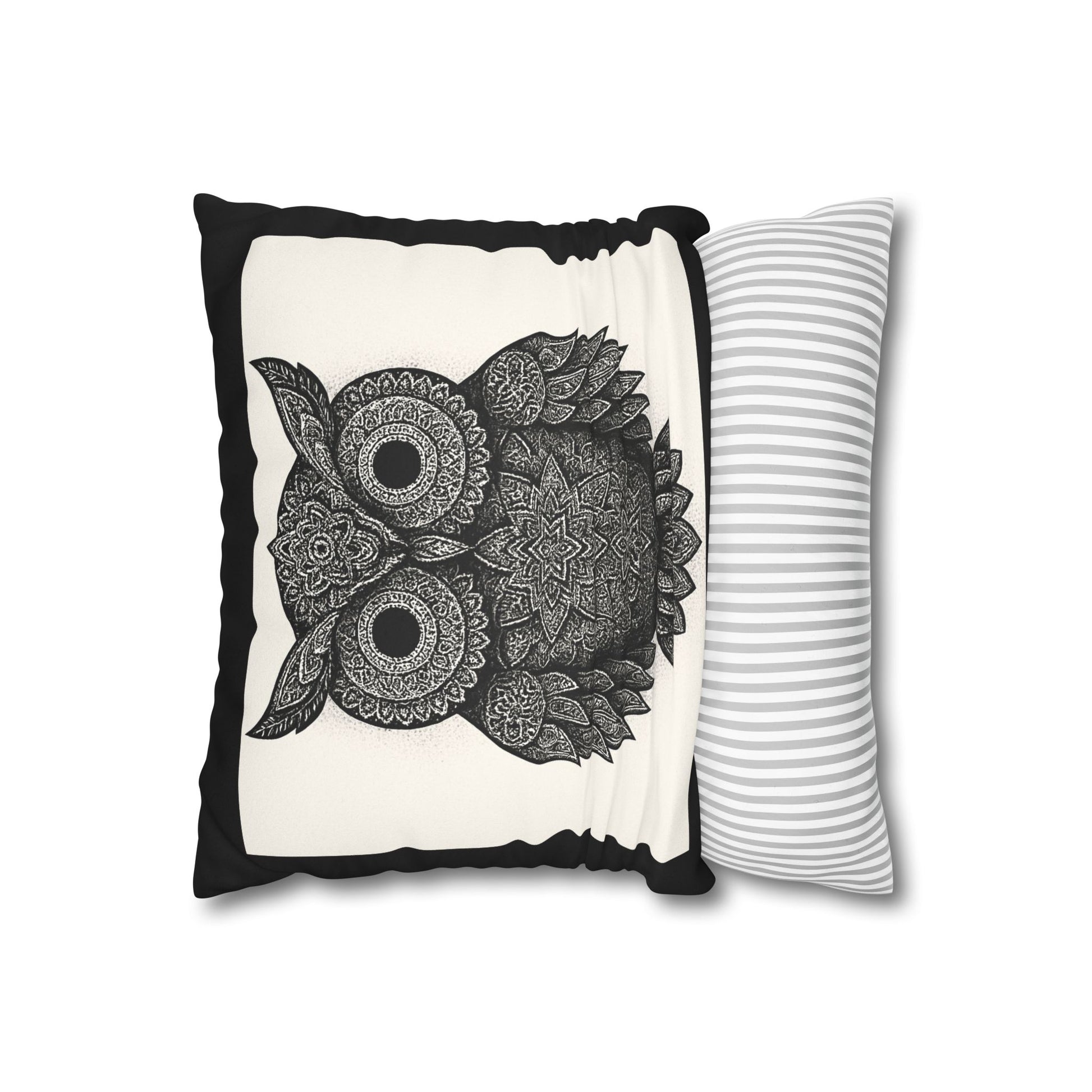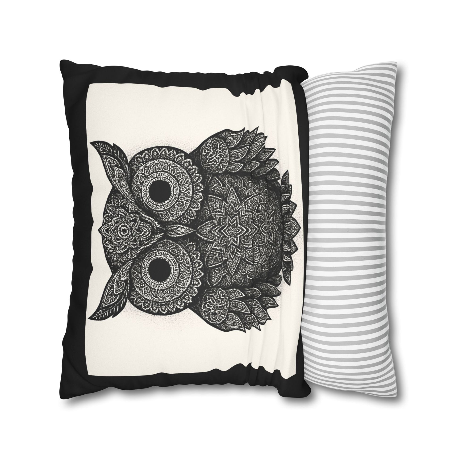 Black & White Owl Pillowcase - Boho Home Decor, Cozy Cushion Cover, Gift for Animal Lovers, Nature Accent Pillow, Living Room Decor