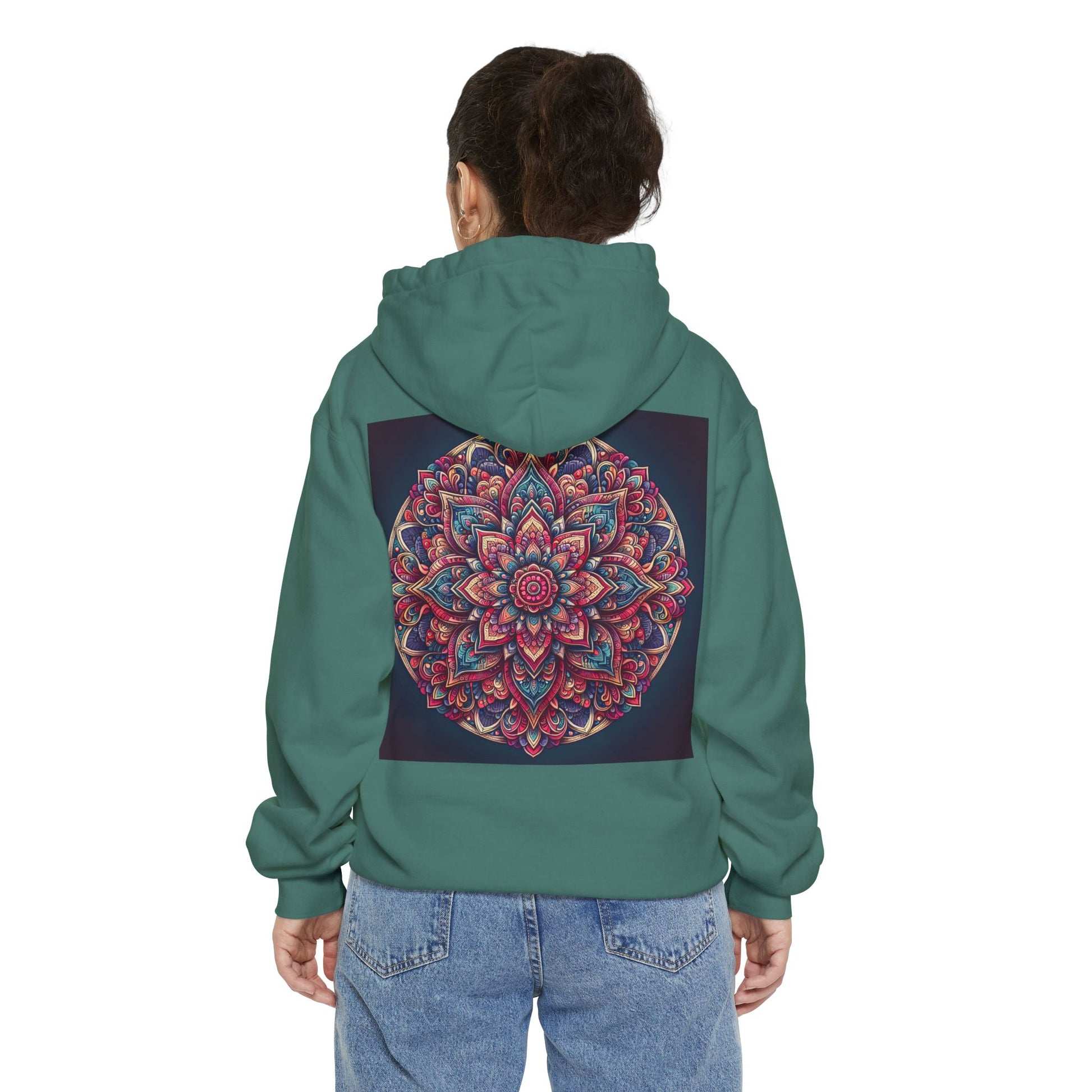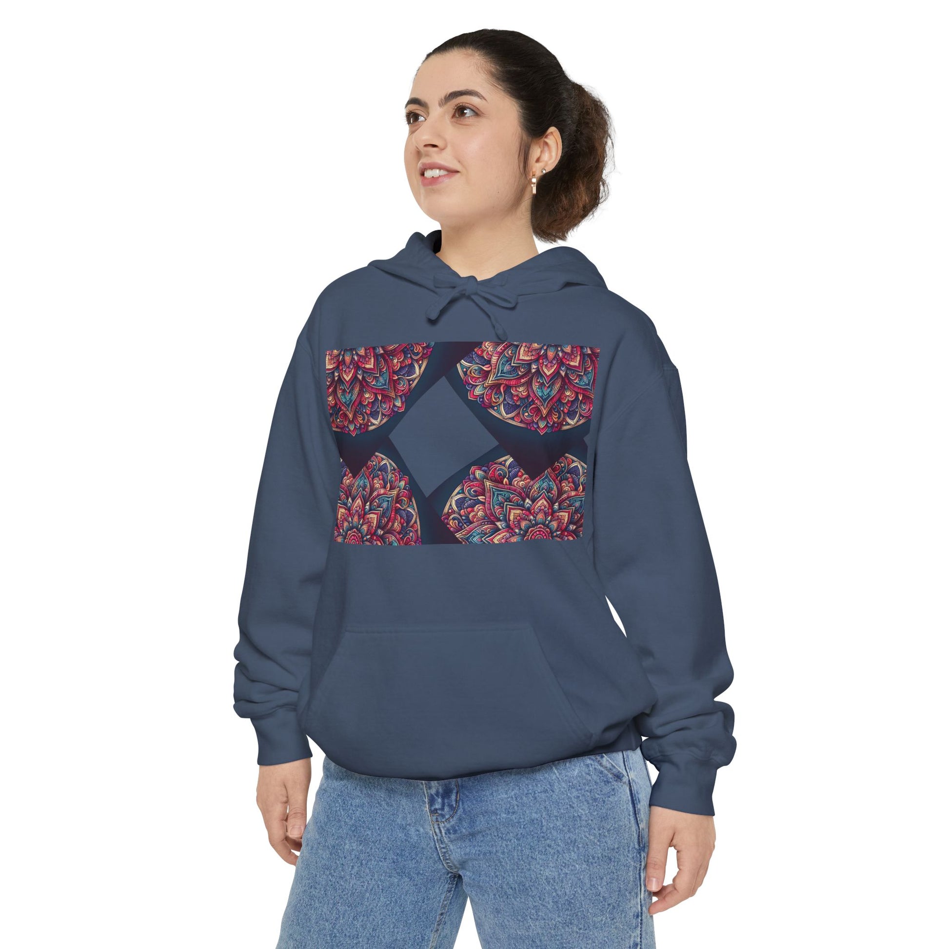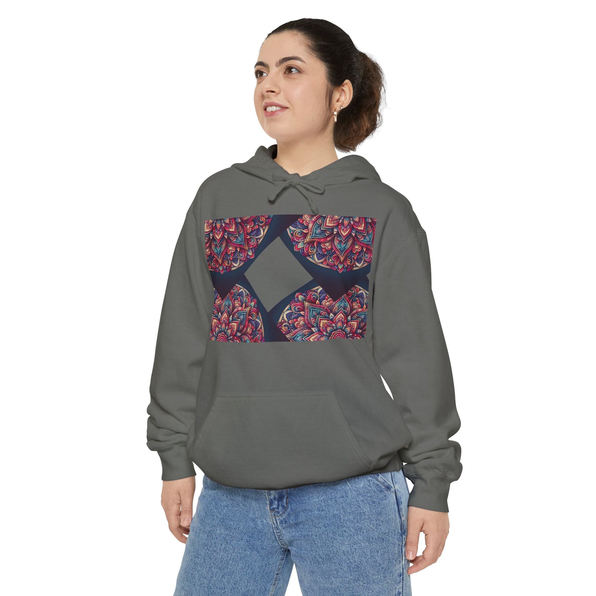 Garment-Dyed Mandala Hoodie - Cozy Floral Art Sweatshirt