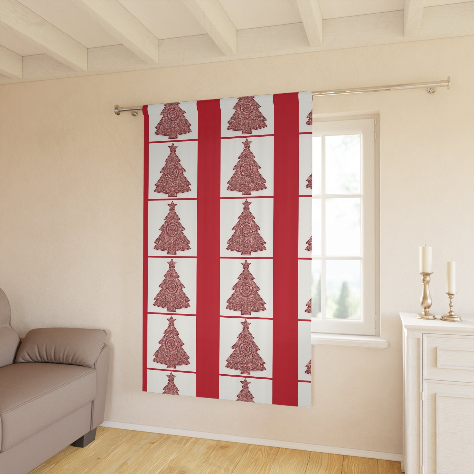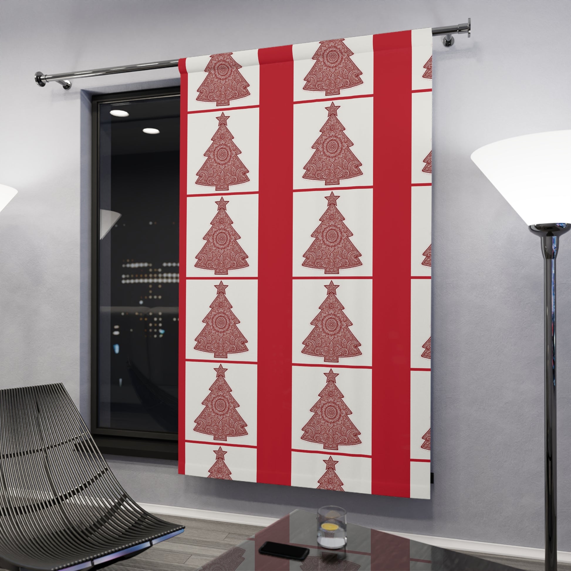 Holiday Curtain Panel — Red Mandala Christmas Tree Window Curtain