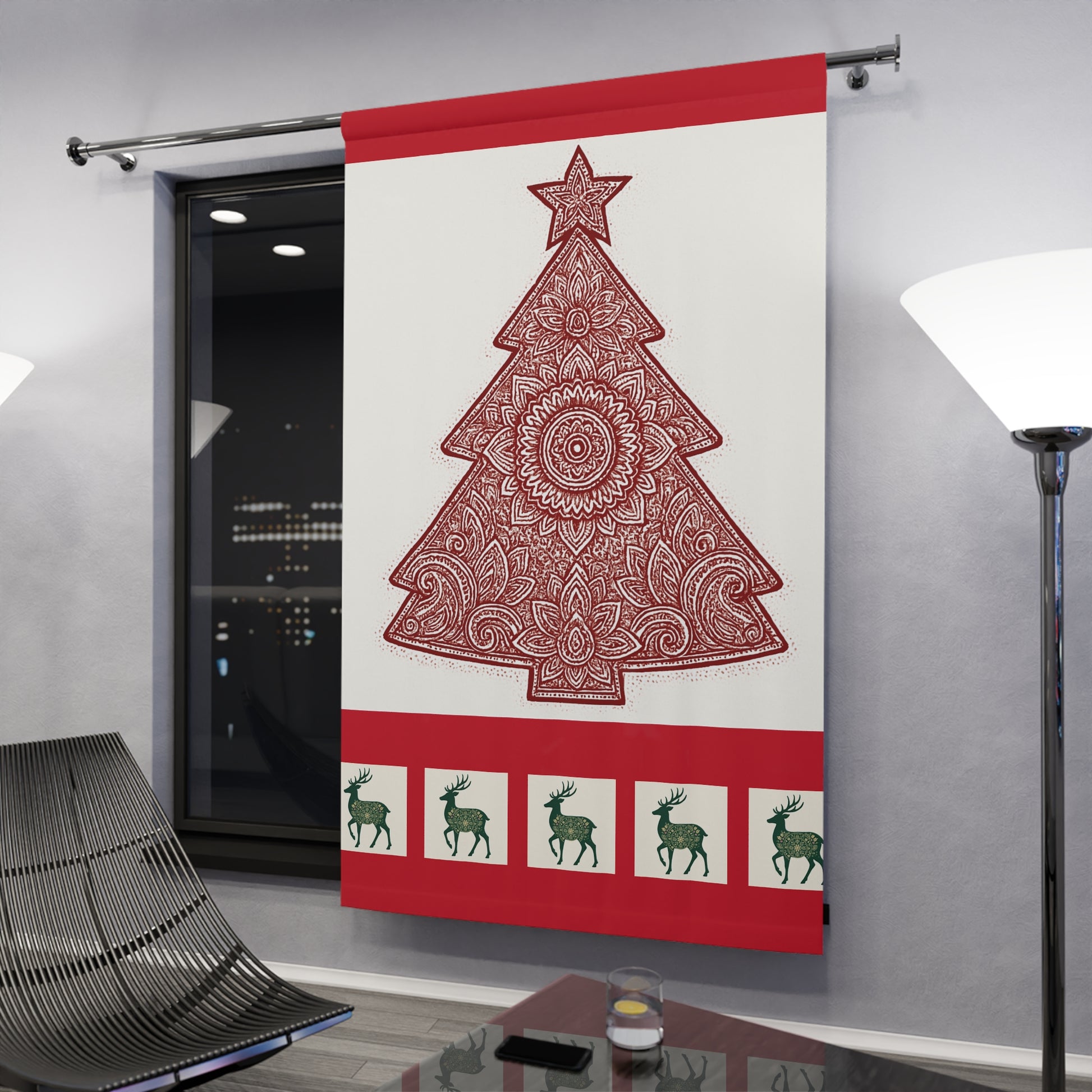 Holiday Curtain Panel — Red Mandala Christmas Tree Window Curtain
