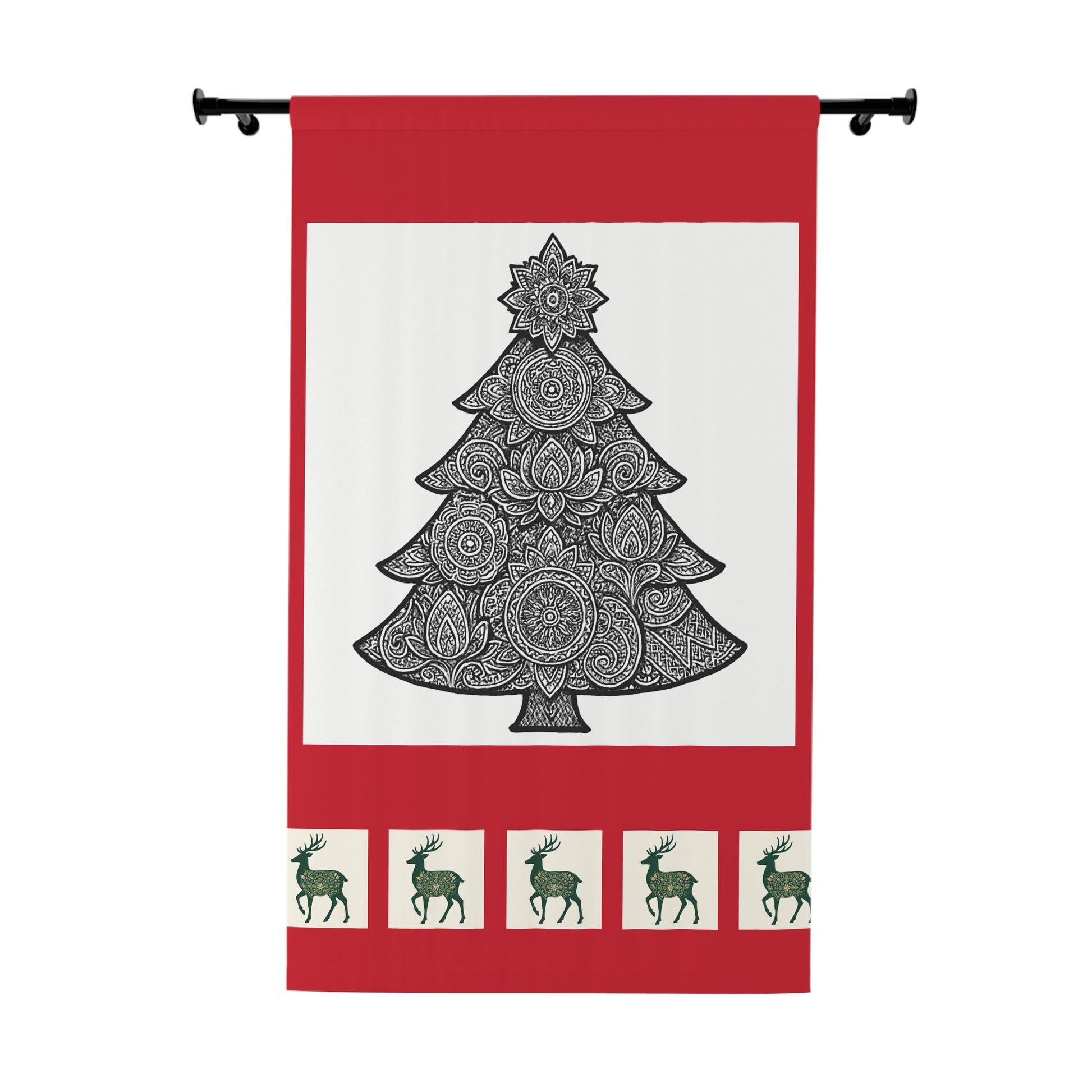 Holiday Curtain Panel — Red Mandala Christmas Tree Window Curtain
