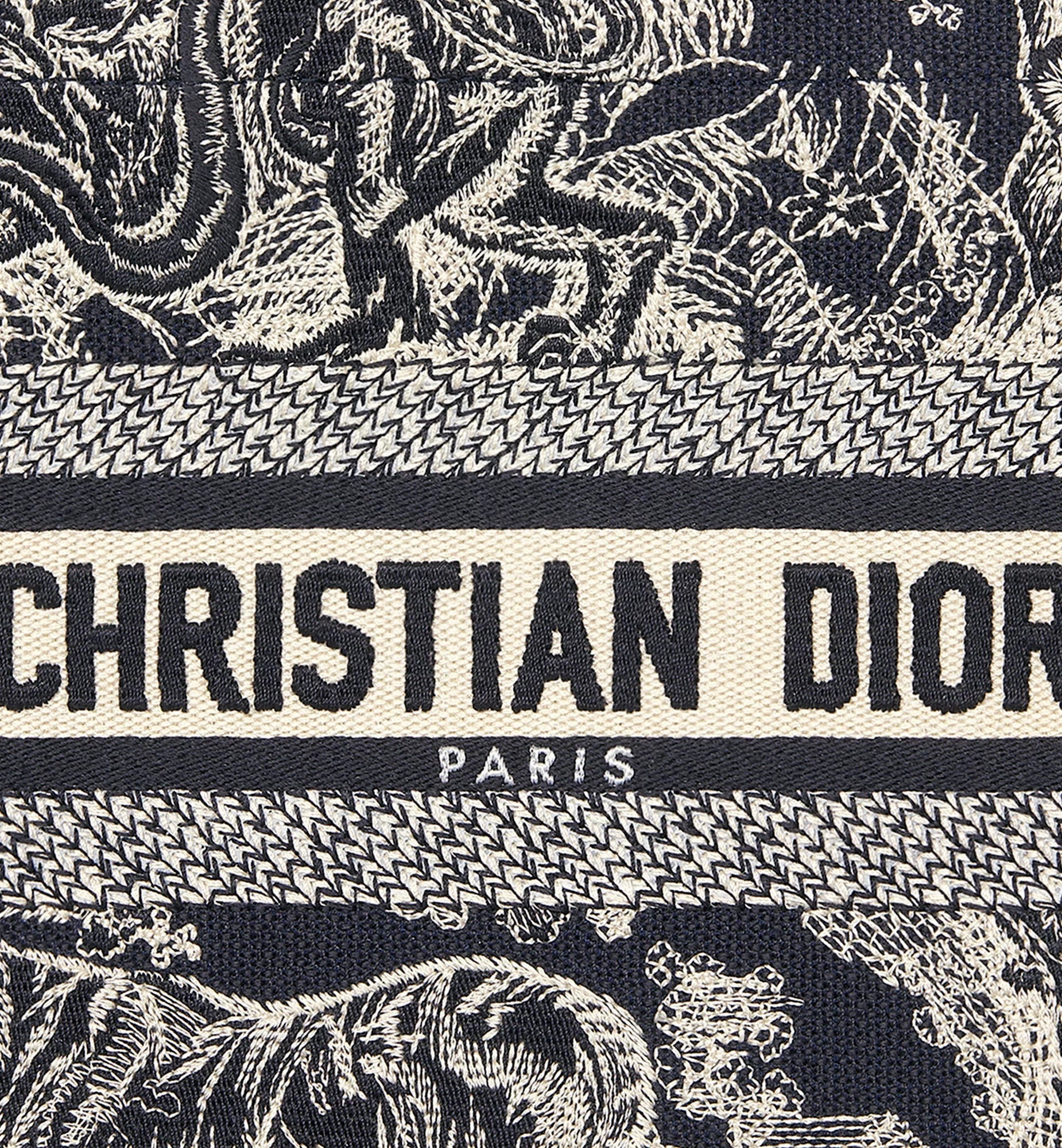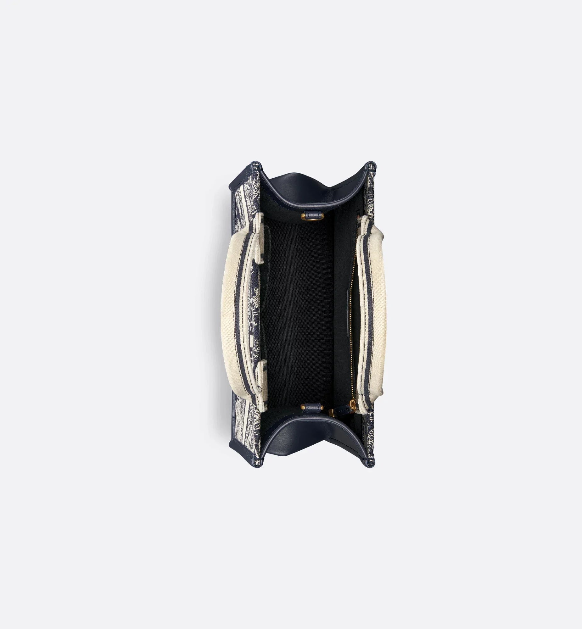 Small Book Tote Blue and Ecru Toile de Jouy Reverse Embroidery and Blue Calfskin