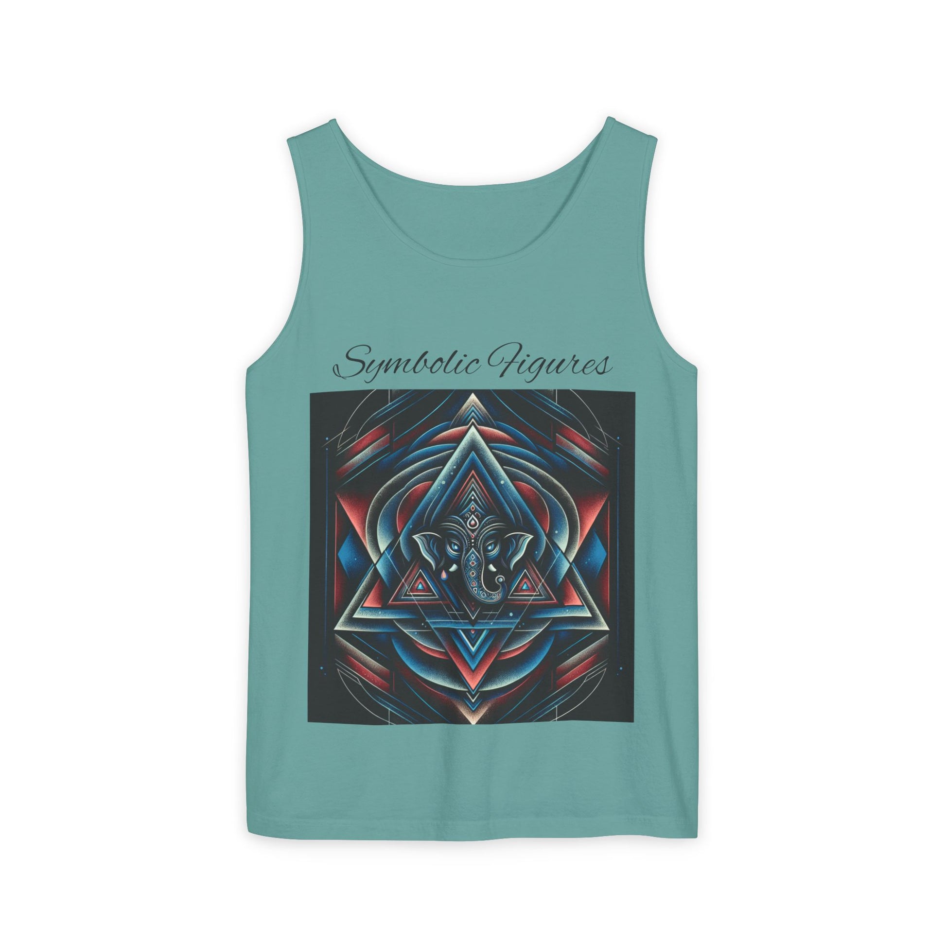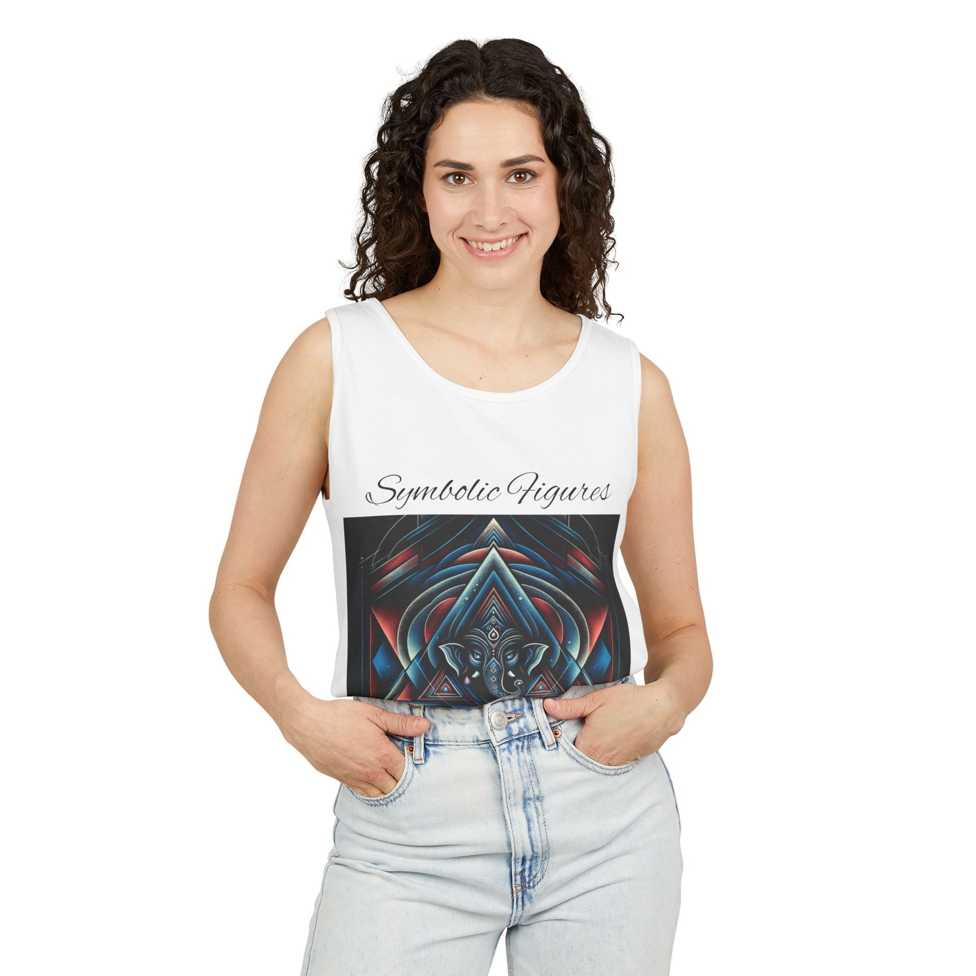 Symbolic Figures Unisex Garment-Dyed Tank Top, Boho Style Tee, Festival Wear, Yoga Shirt, Spiritual Gift