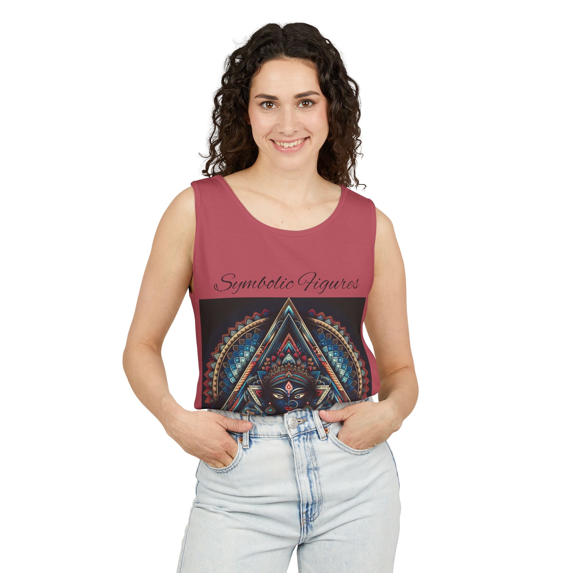 Symbolic Figures Unisex Tank Top - Bohemian Style Shirt, Sun & Moon Graphic Tee, Festival Wear, Meditation Apparel