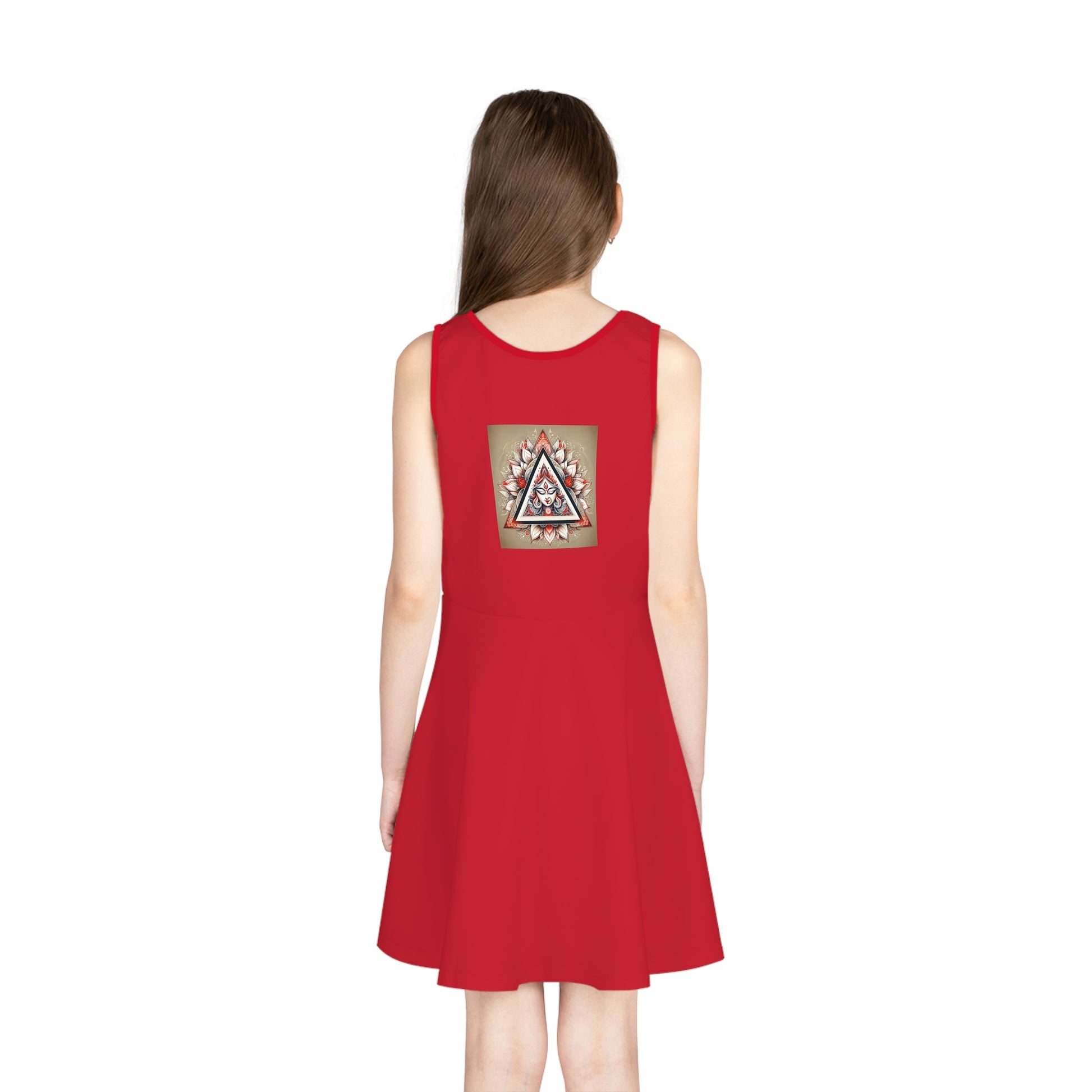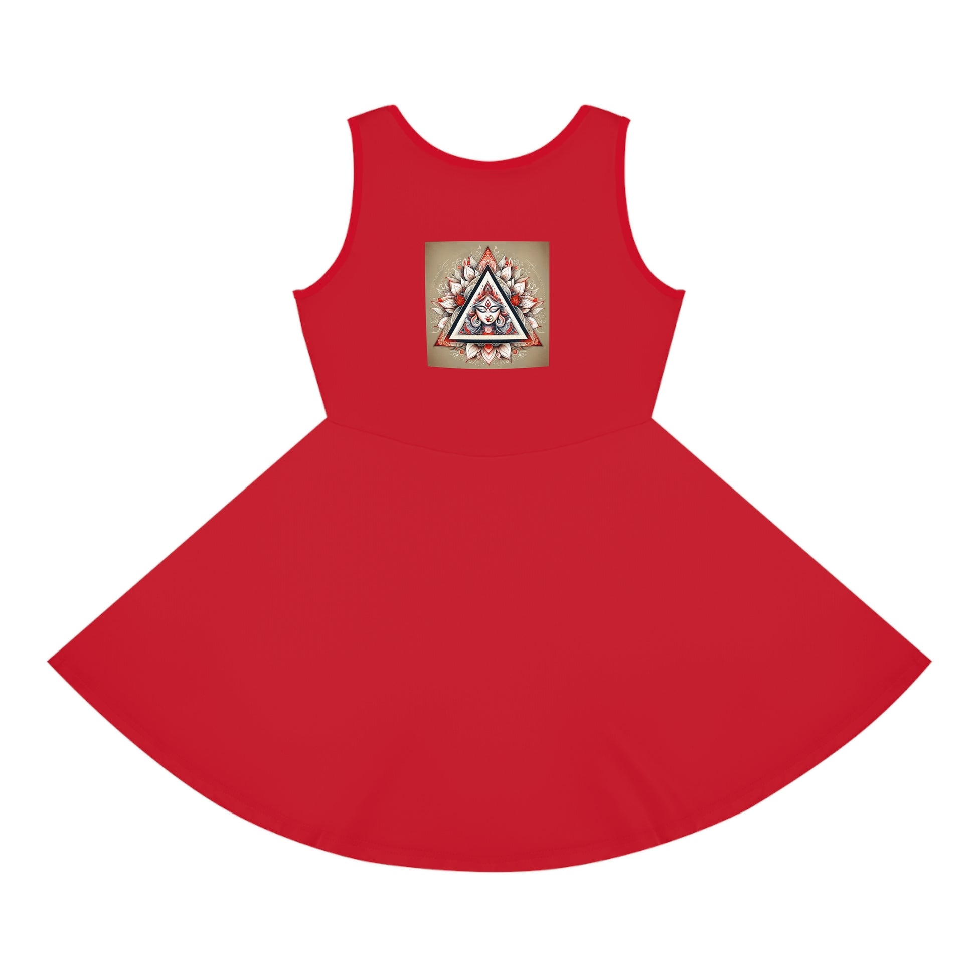 Vibrant Girls' Sleeveless Sundress with Geometric Design, Summer Dress, Party Wear, Floral Dress, Beach Outfit, Kids Fashion